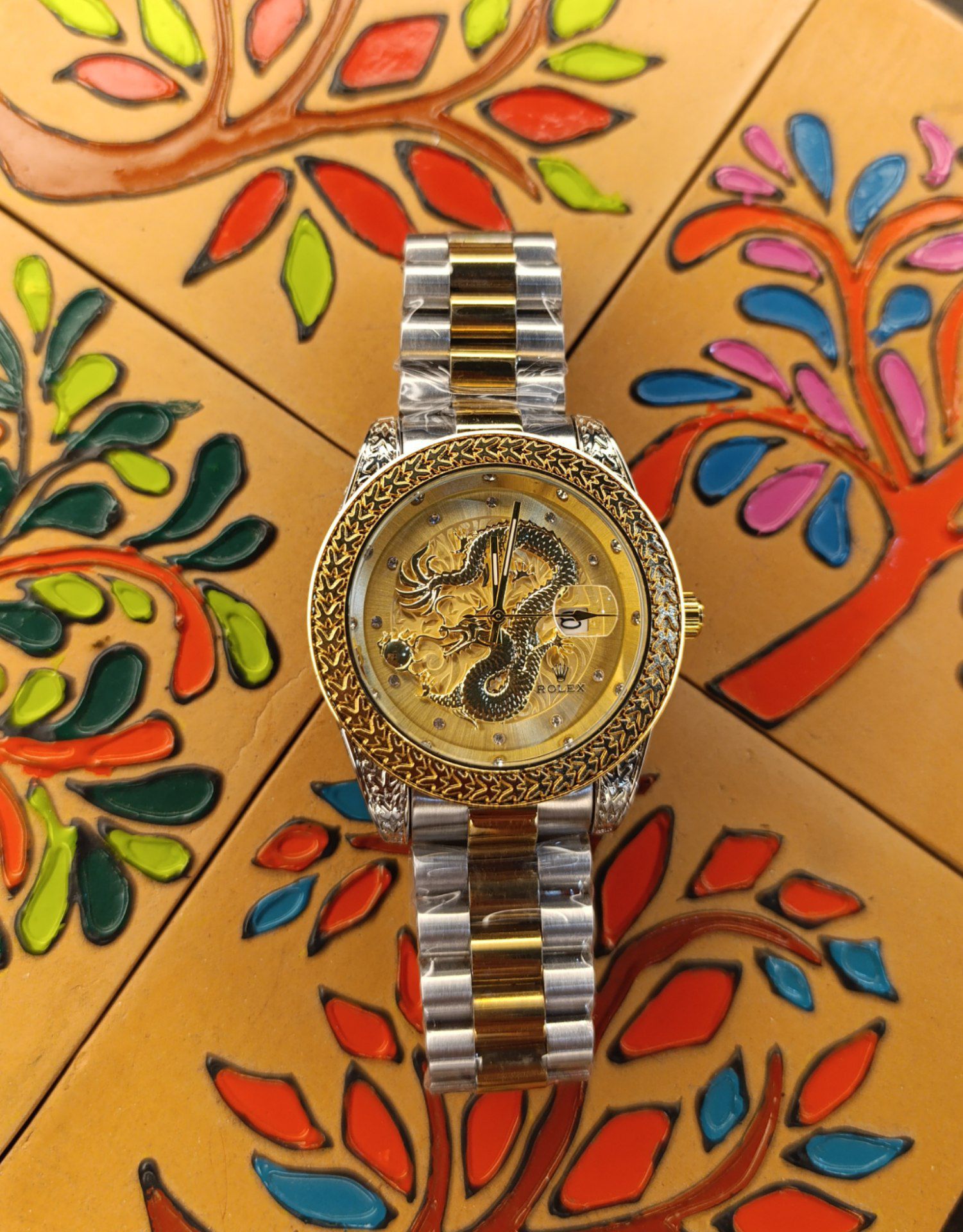 ساعت مچی مردانه ROLEX. برند رولکس طرح اژدها 🐉 مناسب آقایان موتور درجه یک کیفیت بسیار عالی دارای تقویم روزشمار شیشه تلسکوپی تقویم قاب و بند تمام استیل قفل کلیپسی تاجدار اصلی ضد آب، رنگ ثابت و ضد حساسیت 🌈 رنگبندی متنوع مطابق تصاویر 🎁 به همراه جعبه ساعت