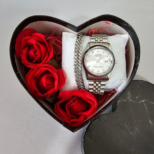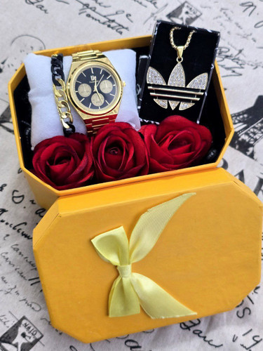 پک مردانه ساعت و دستبند و گردنبند بهمراه باکس و گل مصنوعی